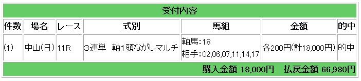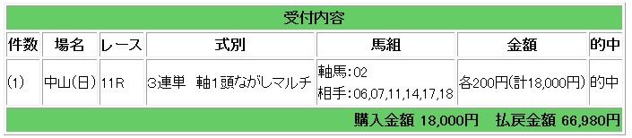会員様には2イスラボニータ、18ウインフルブルームを軸にした3連単的中となりました。