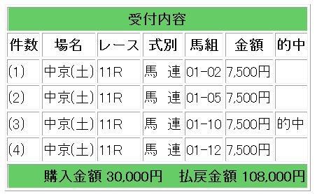 11/6チャンピオンズカップ的中(33万1200円獲得)