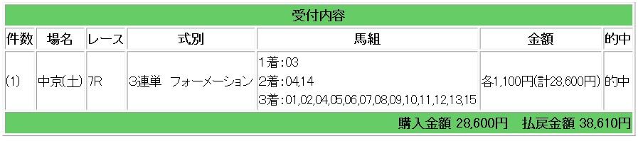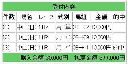 8ダノンデサイルからの馬単指示で37.7倍的中となり、37万7000円の払い戻しとなりました。